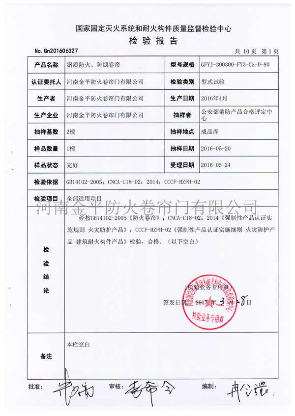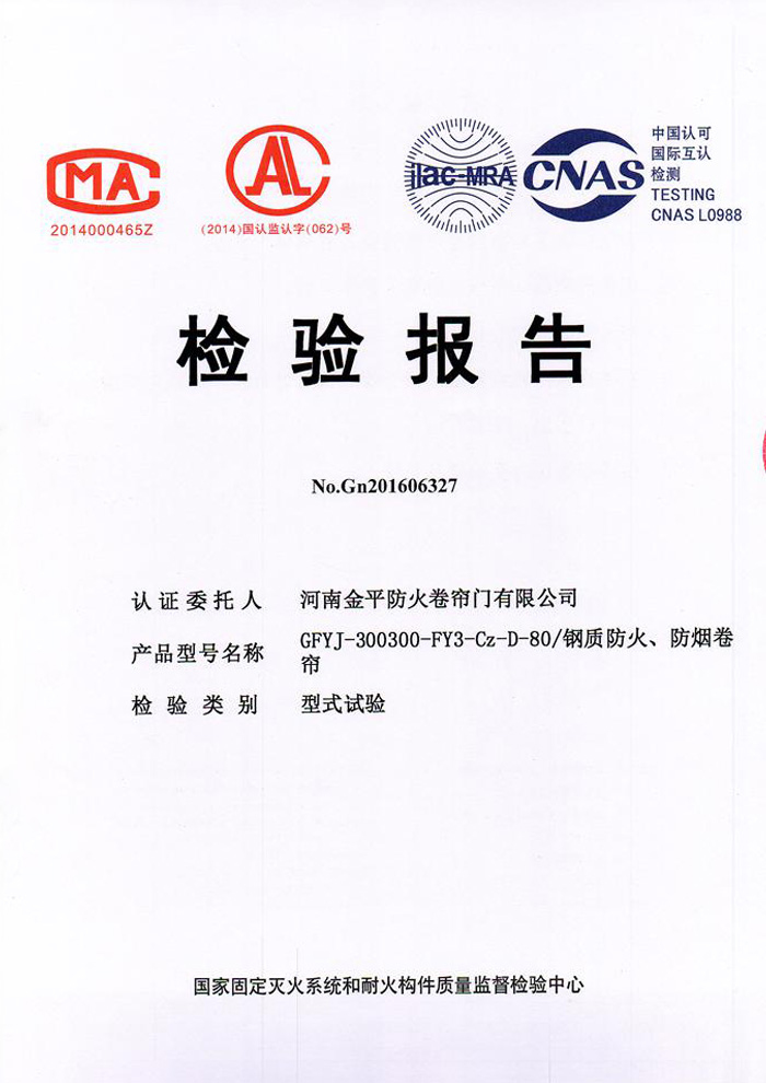 鋼質複合防火(huǒ)、防煙檢驗報告